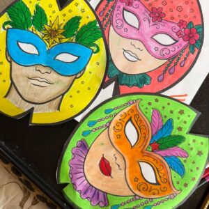 São 3 moldes de máscaras de Carnaval para colorir e montar em 3D
