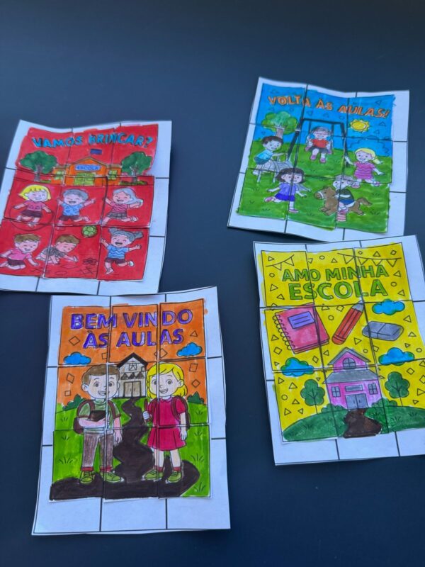 São 16 páginas com atividades de quebra-cabeça com tema volta às aulas para os alunos do Fundamental 1
