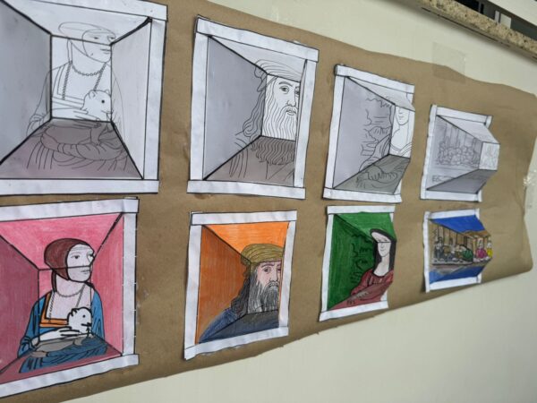São 4 moldes em 3D com obras de Leonardo da Vinci.