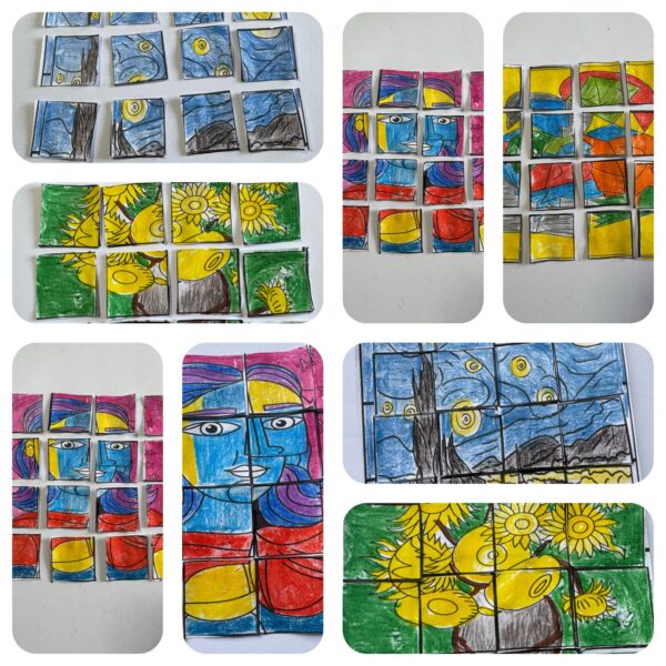 Quebra-cabeça com obras dos artistas Pablo Picasso e Van Gogh, São 10 páginas